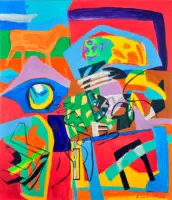 heute aufgehoben. Viele Arbeiten weisen starke Farbkontraste auf. Farben symbolisieren für ihn bestimmte